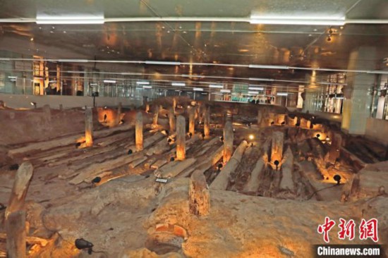 位于廣州市越秀區(qū)光明廣場的南越國木構水閘遺址完成展陳提升后,于18日重新向公眾開放。