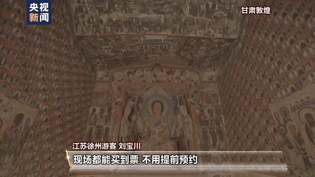 江蘇徐州游客 劉寶川:因為去年敦煌的旅游太熱了,駱駝都等紅綠燈,所以今年我想著冬天來可能人少一些?,F(xiàn)場都能買到票,不用提前預約。