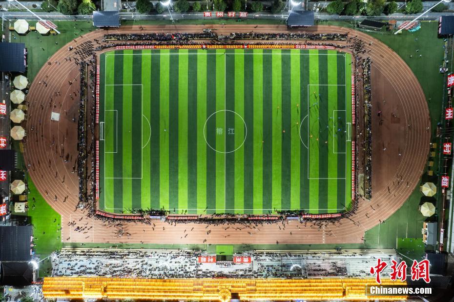 圖為1月18日晚,航拍2024年貴州“村超”預(yù)選賽現(xiàn)場。(資料圖)唐哲 攝