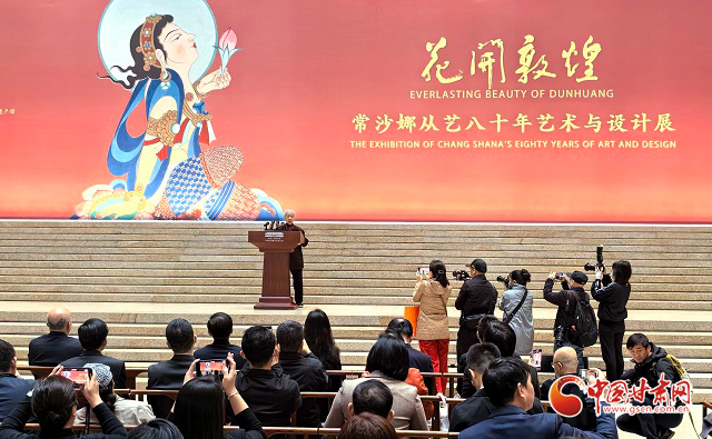 中國甘肅網(wǎng)4月30日訊(西北角·中國甘肅網(wǎng)記者 任磊)29日上午,“花開敦煌——常沙娜從藝八十年藝術與設計展”在中國工藝美術館盛大開幕。展覽匯聚了著名藝術教育家和藝術設計家常沙娜先生400余件代表性作品,既展現(xiàn)了她深厚的敦煌藝術傳統(tǒng)積淀,也彰顯了她為新中國藝術設計做出的杰出貢獻。