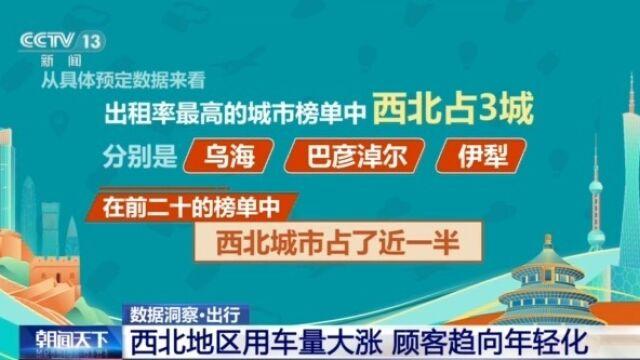 在地域上,可以看到今年西北地區(qū)的用車(chē)量大漲,而且涌入了大量的年輕客戶(hù)群體。從具體預(yù)訂數(shù)據(jù)來(lái)看,在出租率最高的城市榜單中,西北占了3城:分別是烏海、巴彥淖爾、伊犁。而在前二十的榜單中,西北城市占了近一半。