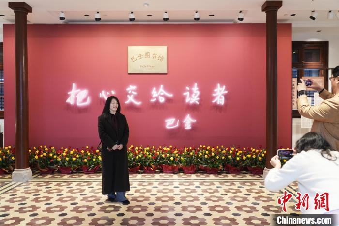 11月25日,巴金先生誕辰120周年,巴金圖書館在上海揭幕,實(shí)現(xiàn)了巴老生前想要?jiǎng)?chuàng)辦一座圖書館的心愿。圖為觀眾在巴金圖書館留影。中新社記者 張亨偉 攝