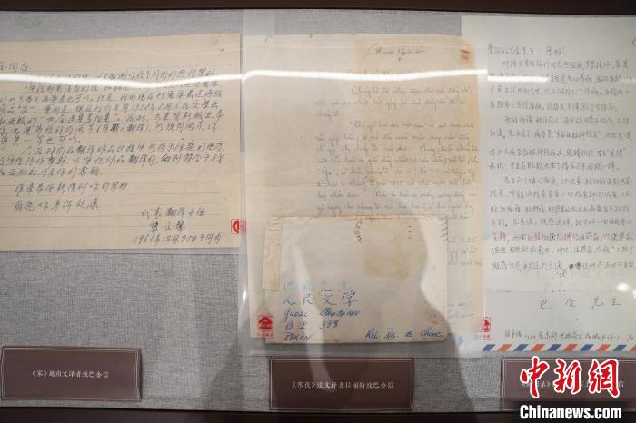 圖為巴金與各國翻譯者的書信展示。中新社記者 張亨偉 攝