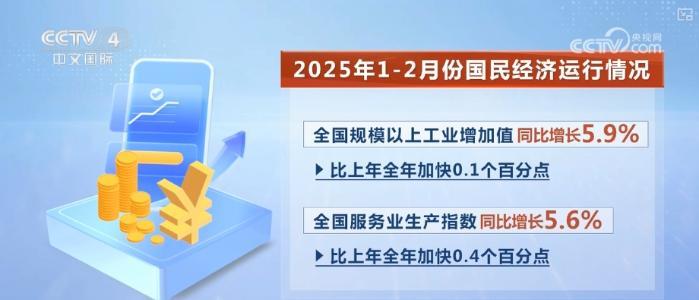 數(shù)據(jù)顯示,2025年1—2月份,工業(yè)生產(chǎn)較快增長(zhǎng),全國(guó)規(guī)模以上工業(yè)增加值同比增長(zhǎng)5.9%,比上年全年加快0.1個(gè)百分點(diǎn)。服務(wù)業(yè)增勢(shì)較好,全國(guó)服務(wù)業(yè)生產(chǎn)指數(shù)同比增長(zhǎng)5.6%,比上年全年加快0.4個(gè)百分點(diǎn)。市場(chǎng)銷售增長(zhǎng)加快,社會(huì)消費(fèi)品零售總額83731億元,同比增長(zhǎng)4.0%,比上年全年加快0.5個(gè)百分點(diǎn)。