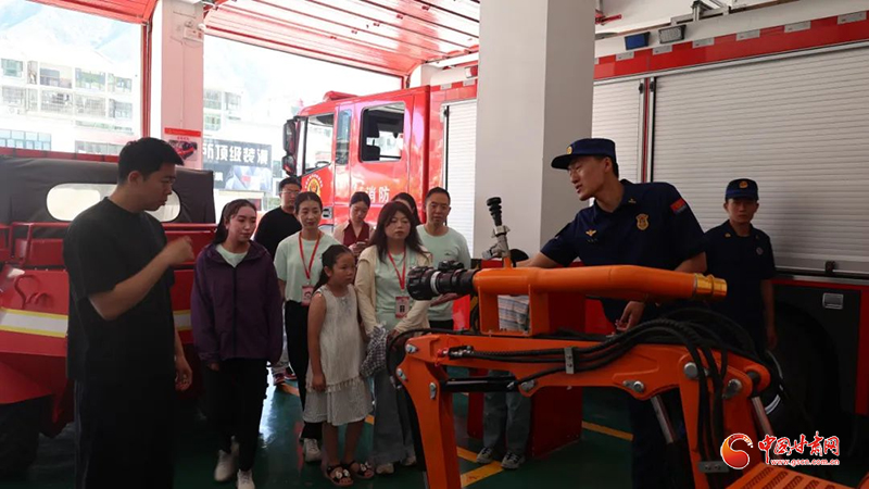 講解結(jié)束后,消防員帶領(lǐng)大家參觀了消防救援車輛、專業(yè)救援設(shè)備及消防員日常生活區(qū)域。在裝備展示區(qū),消防員詳細講解了液壓破拆工具、生命探測儀、水域救援裝備等器械在泥石流、火災(zāi)等不同災(zāi)害場景中的應(yīng)用,結(jié)合舟曲地質(zhì)災(zāi)害特點,生動還原救援場景,讓參觀者深刻體會到消防救援工作的復(fù)雜性、專業(yè)性與實用性。