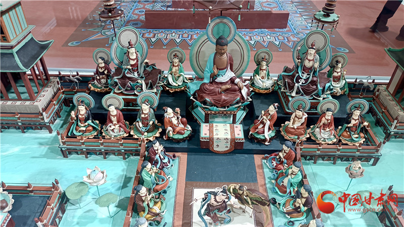 當(dāng)這座長2.4米、寬1.4米、高0.8米的《觀無量壽經(jīng)變》問世,30多個(gè)人物從壁畫中飛出來,面塑也讓《觀無量壽經(jīng)變》以立體的方式完美呈現(xiàn)。