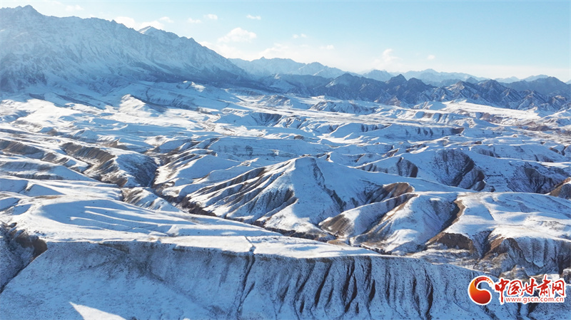 時(shí)下,位于民樂(lè)縣境內(nèi)的祁連山脈巍峨群峰被皚皚白雪覆蓋,蔚為壯觀。
