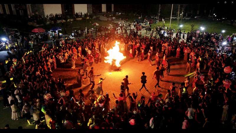 2025年7月,西北師范大學(xué)師生實踐團(tuán)在新聯(lián)村舉辦篝火晚會。受訪者供圖