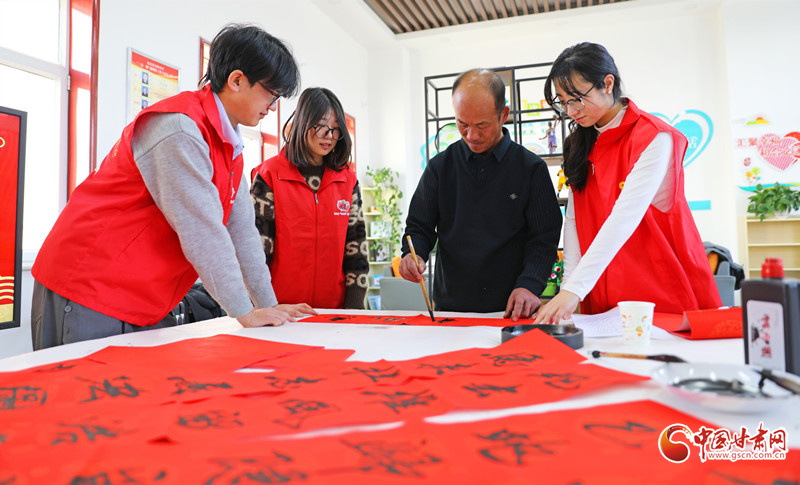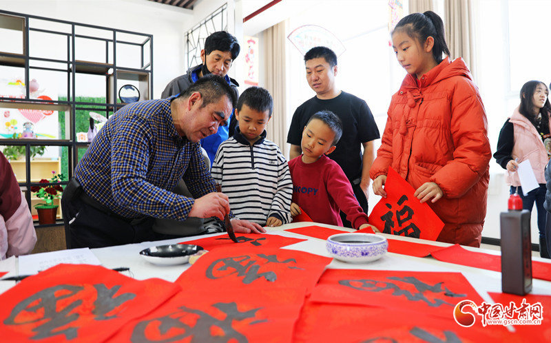 春節(jié)臨近,民樂(lè)縣組織群眾文化志愿者服務(wù)隊(duì)開(kāi)展“翰墨迎春”公益文化活動(dòng),志愿者現(xiàn)場(chǎng)揮毫潑墨書(shū)寫(xiě)春聯(lián),為群眾書(shū)寫(xiě)春聯(lián)和“福”字,讓群眾在家門口享受“文化大餐”,迎接新春佳節(jié)的到來(lái)。